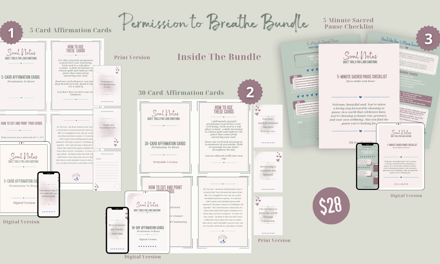 Get instant access to the Permission to Breathe Bundle after purchase and silence the inner critic with gentle affirmations and simple, soul-care steps.