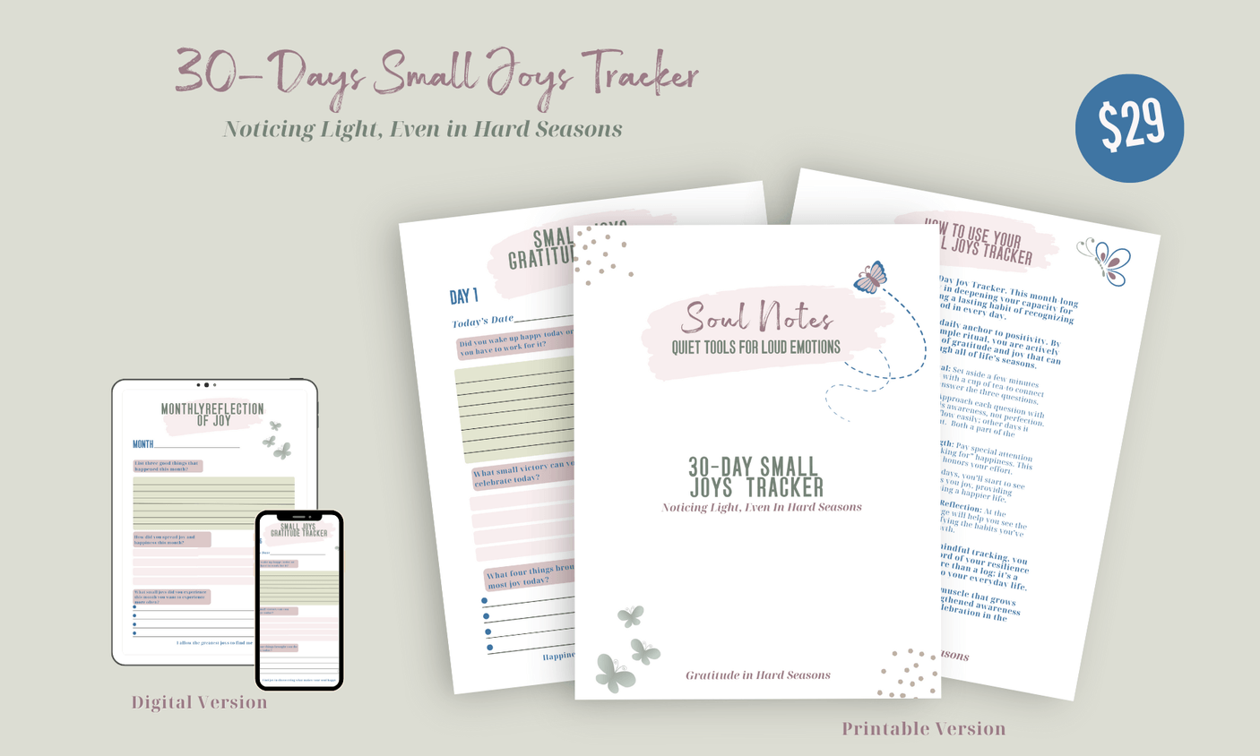 Get instant access to the 30-Day Small Joys Tracker after purchase and create a transformative habit of noticing goodness, every single day.
