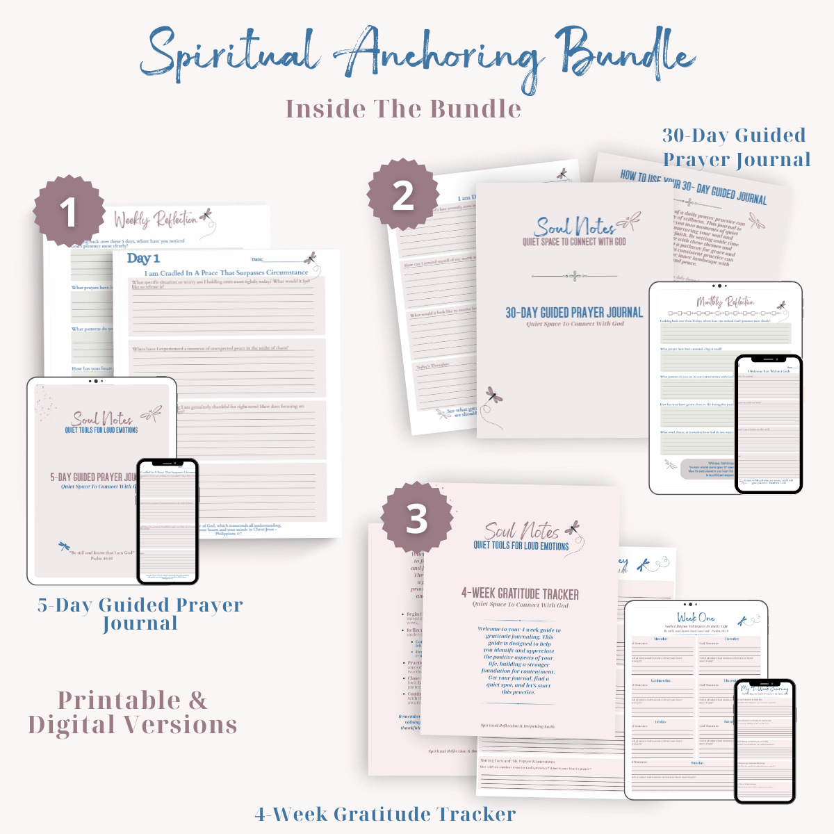 Spiritual Anchoring Bundle includes this Gratitude Tracker, plus the 30-Day Guided Prayer Journal and the 5-Day Guided