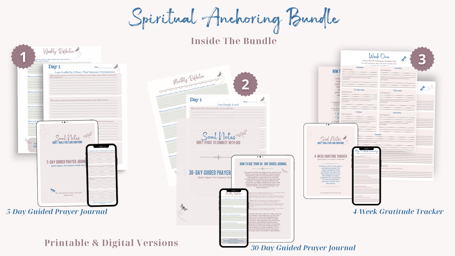 Your complete toolkit for a richer spiritual life. The Spiritual Anchoring Bundle combines guided prayer and intentional gratitude to help you build a consistent, meaningful connection.