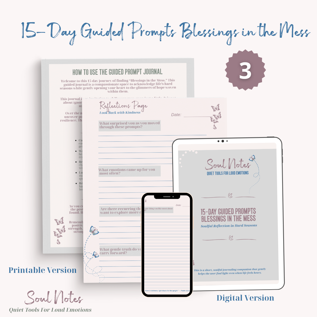 The 15-day journal helps you find God's grace in life's imperfect moments. Each prompt leads you to release worry, embrace gratitude, and remember that blessings often bloom in the middle of the mess.