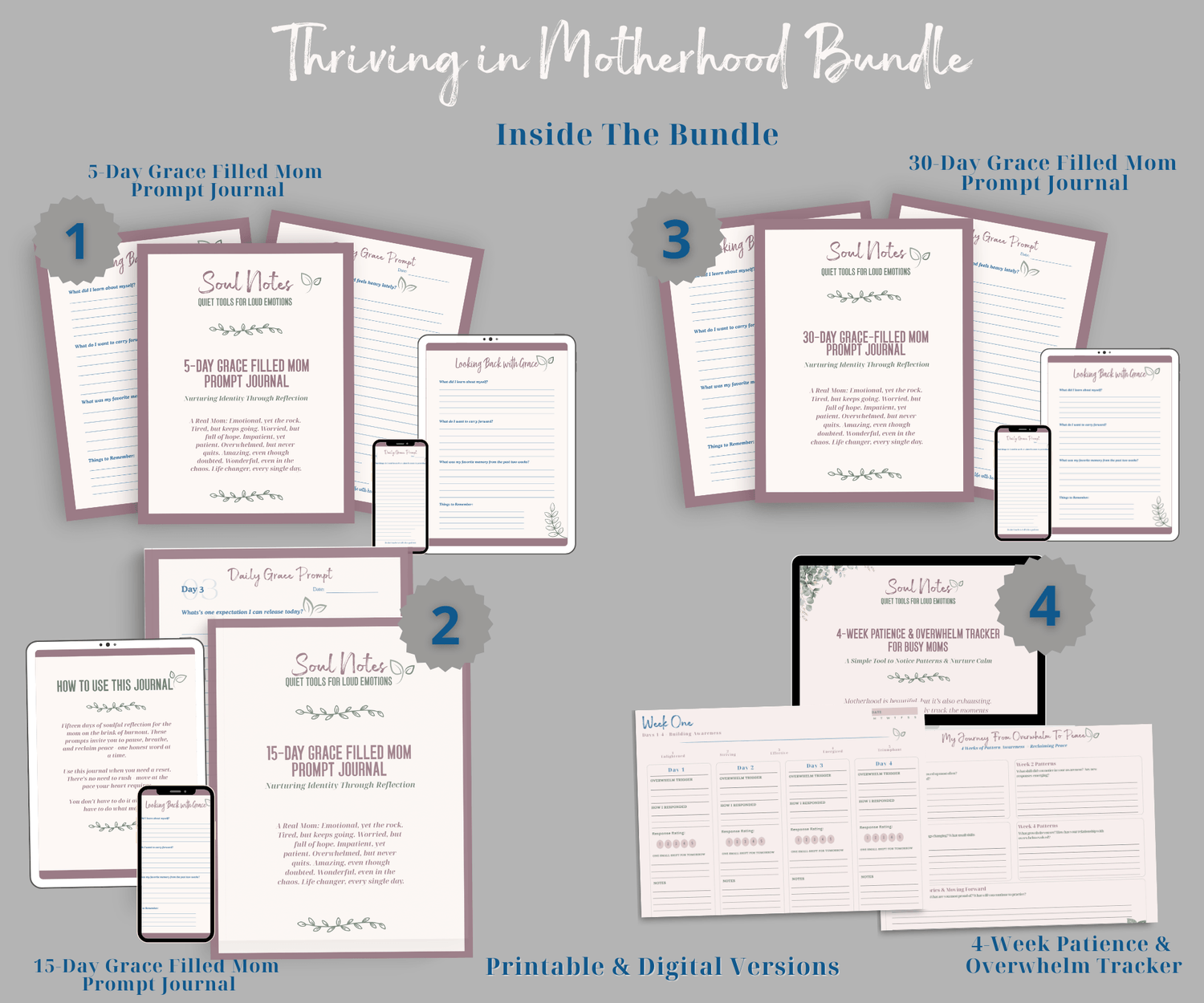 The Thriving in Motherhood Bundle gathers your guided journals and trackers