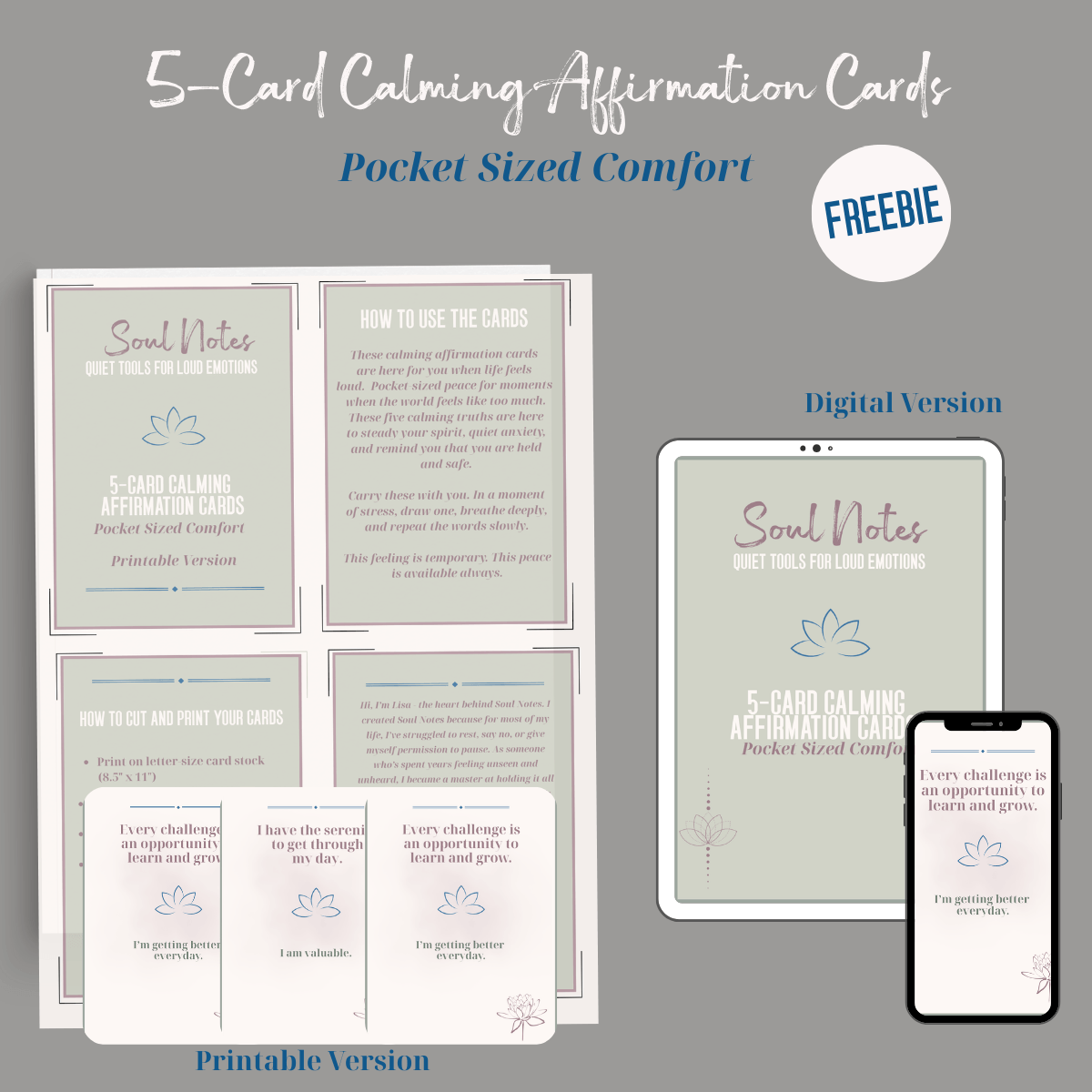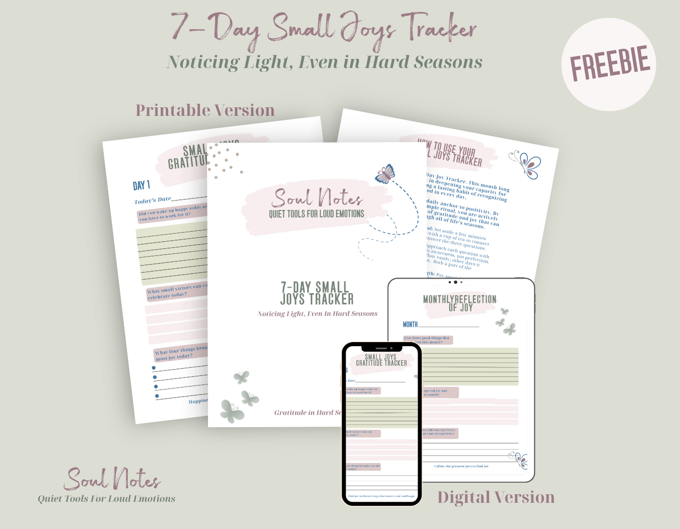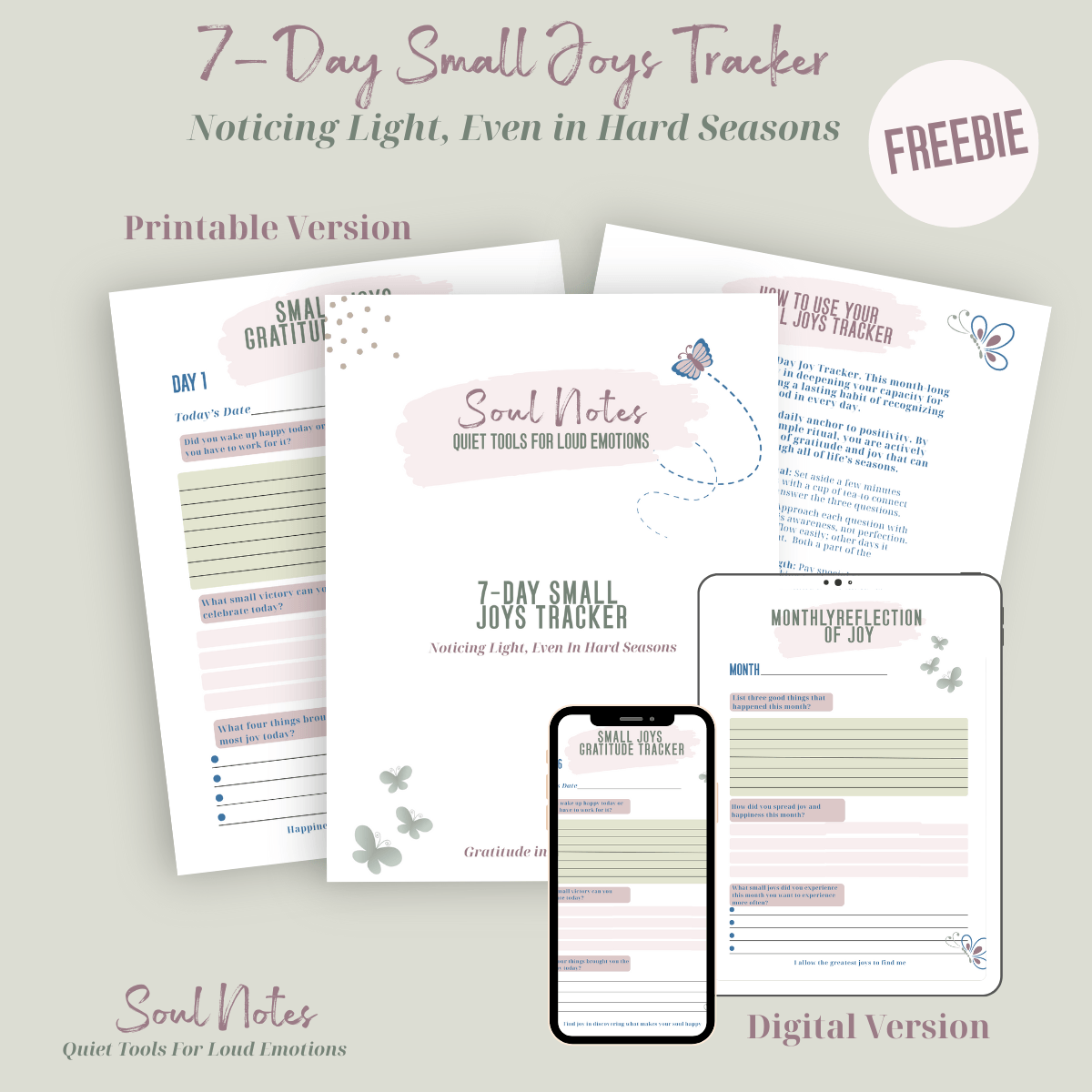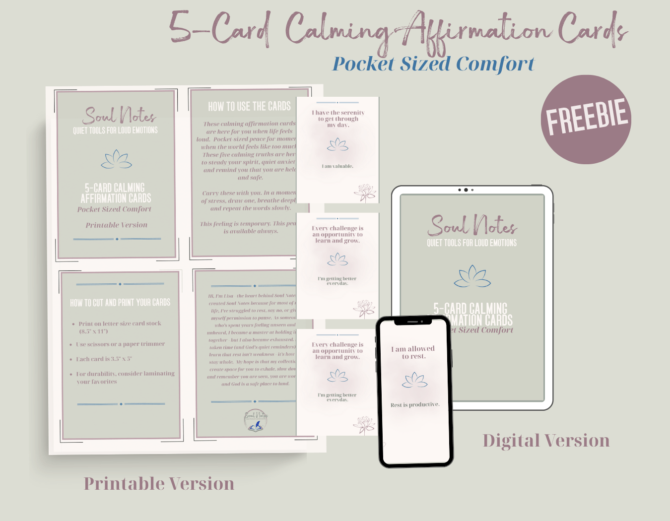 Thank you for joining Soul Notes Digital's community of women seeking grace and peace. Below is our library of free guides. Click on any one of the FREEBIE's to learn more and download it instantly to get started.