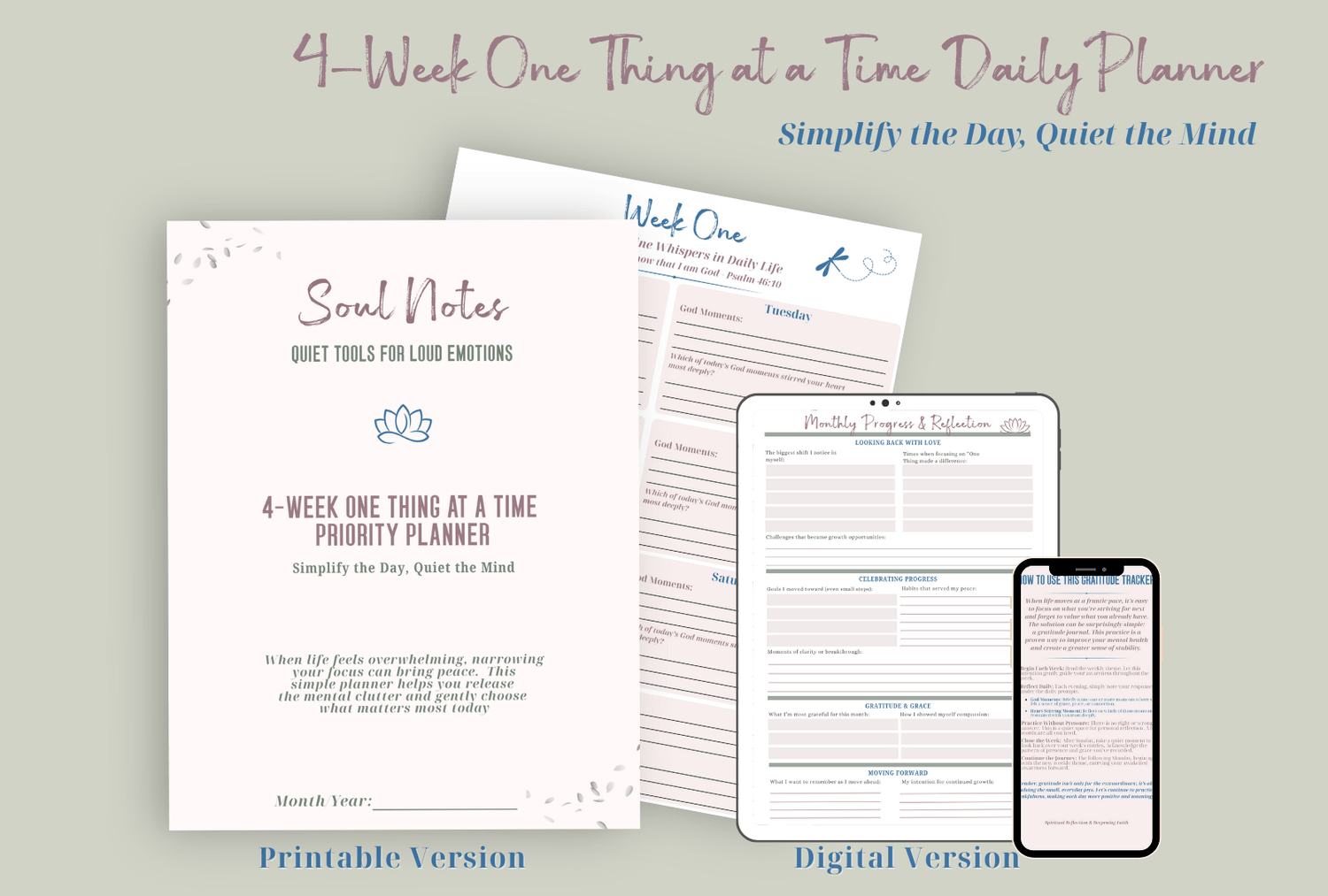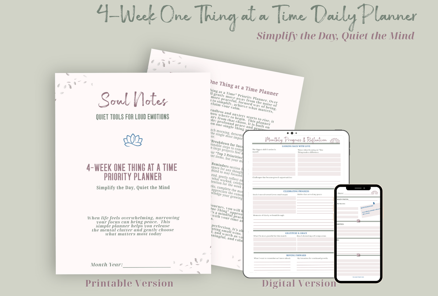 From one recovering perfectionist to another - this planner was born from my own need to quiet the noise. My hope is that it gives you the same gift of focused and peace of mind.